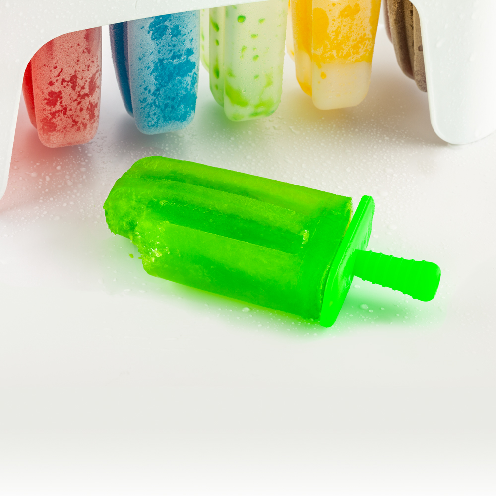 Molde de plástico y silicona para paletas. Con 6 unidades. Empaque caja individual.