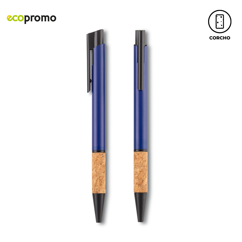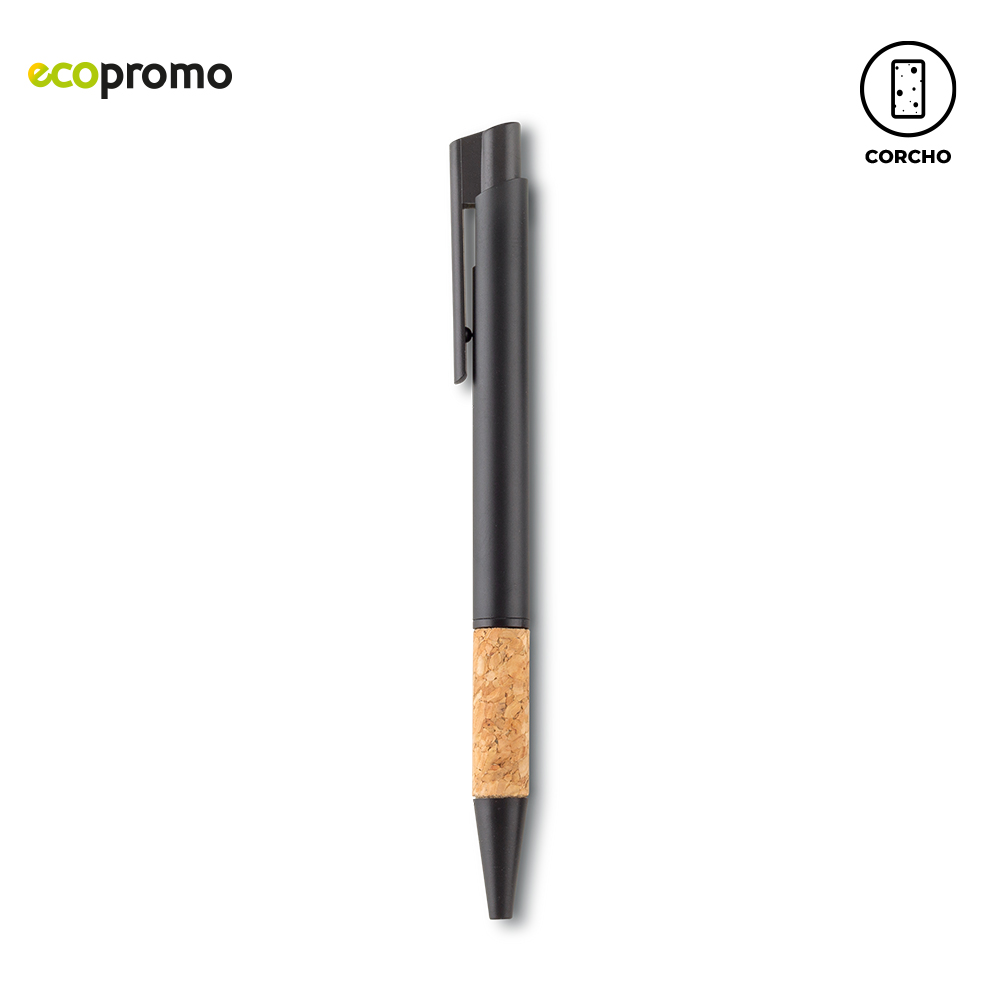 Bolígrafo metálico tipo push. Con grip en corcho.