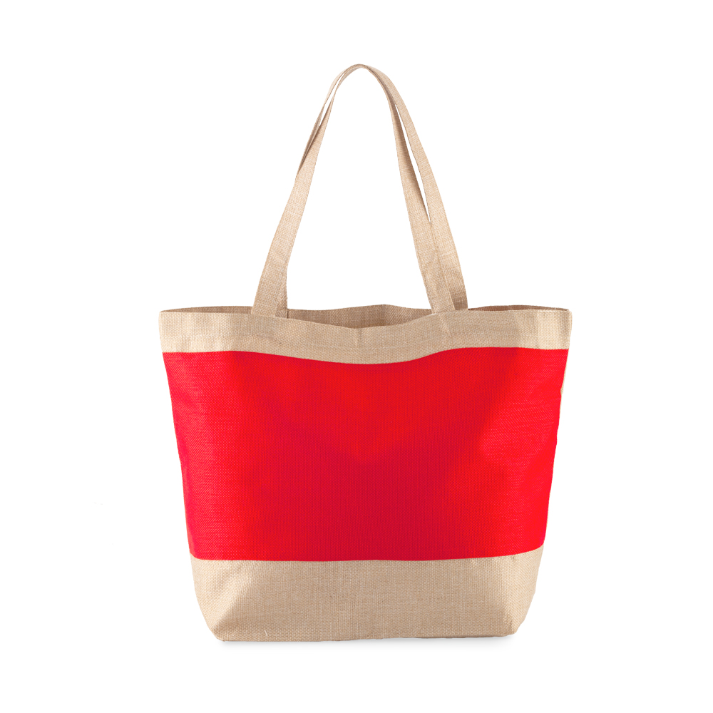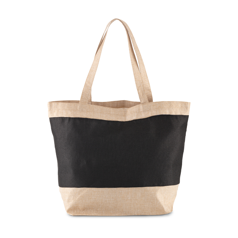 Bolsa en poliéster imitación yute con manijas.