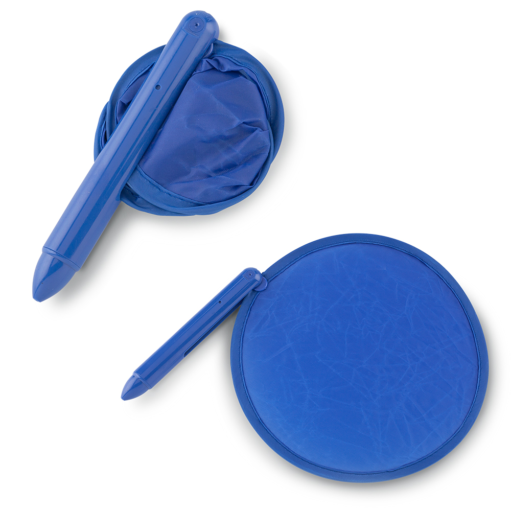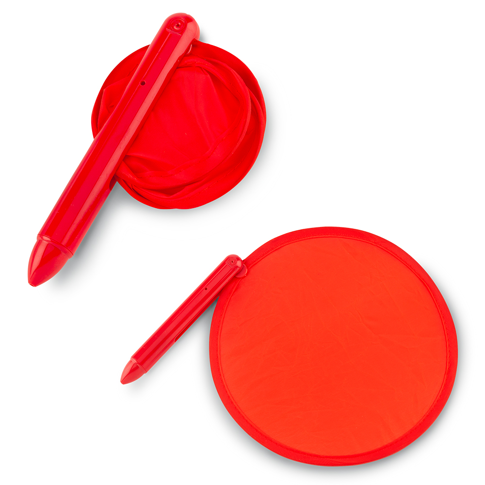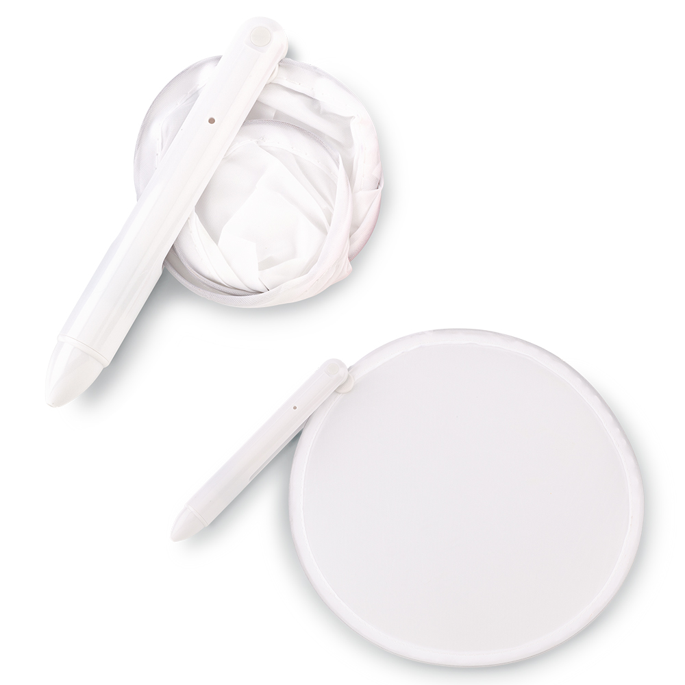 Bolígrafo plástico con abanico plegable en lona poliéster.