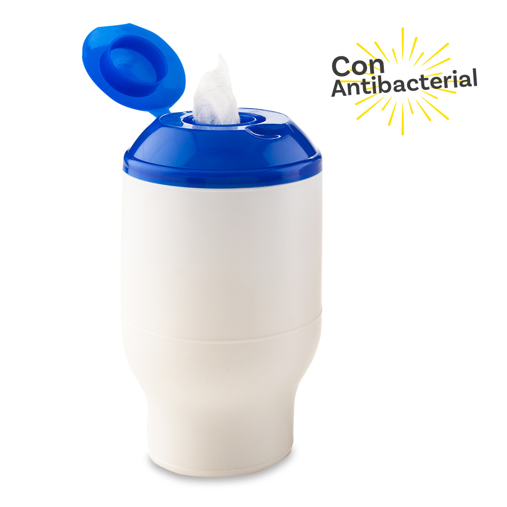 Frasco plástico con 60 paños húmedos antibacteriales. Importado. Registro Invima.
