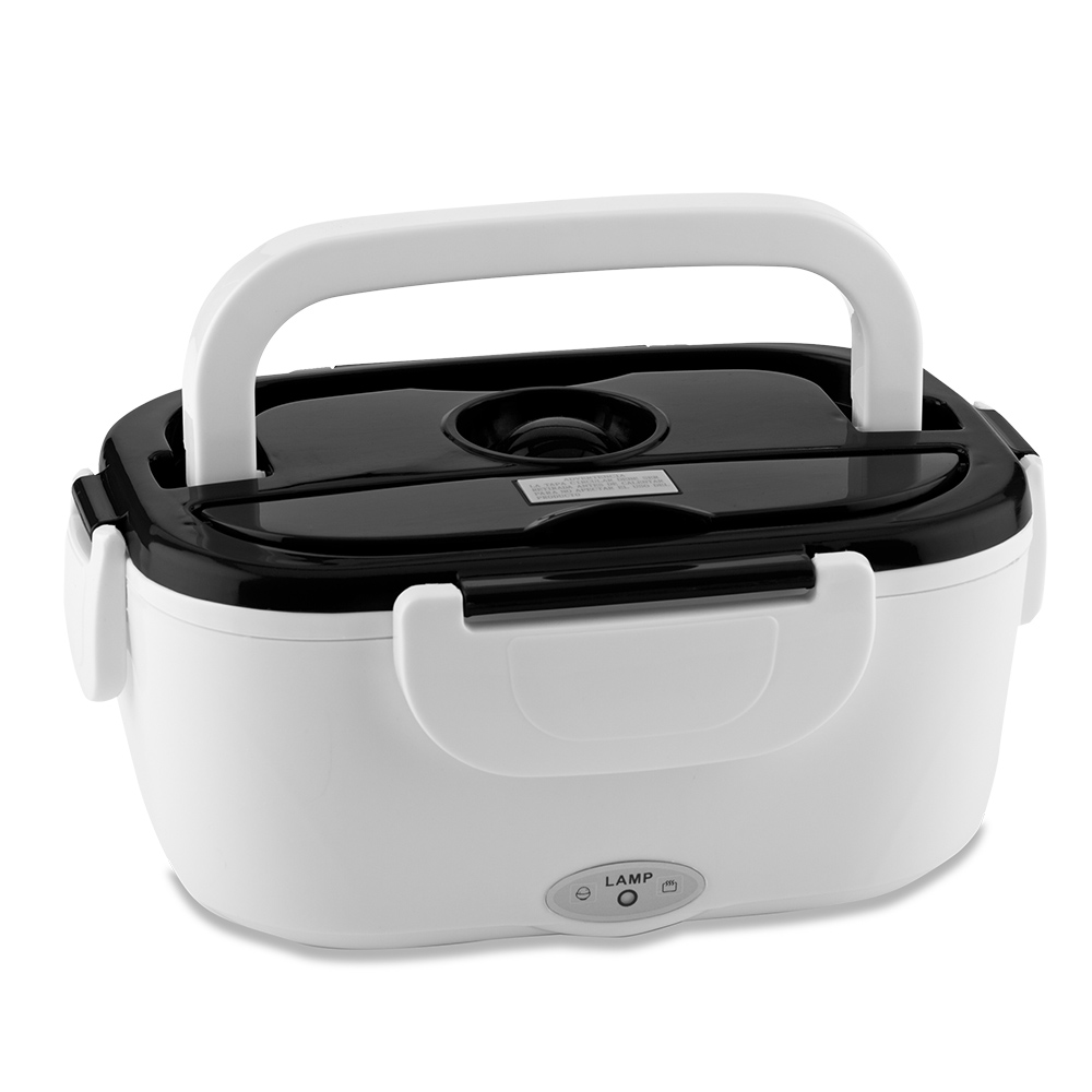 Portacomidas eléctrico con dos compartimentos. Incluye un porta ensalada interior que se retira para calentar, cubierto y tapa de seguridad. Nota Importante: Este portacomidas no cocina los alimentos, toma aproximadamente una hora en calentarlos a una temperatura aceptable, y los mantiene tibios mientras esté conectado. Retire el tapón de caucho de la tapa al conectar. Empaque Caja Individual.