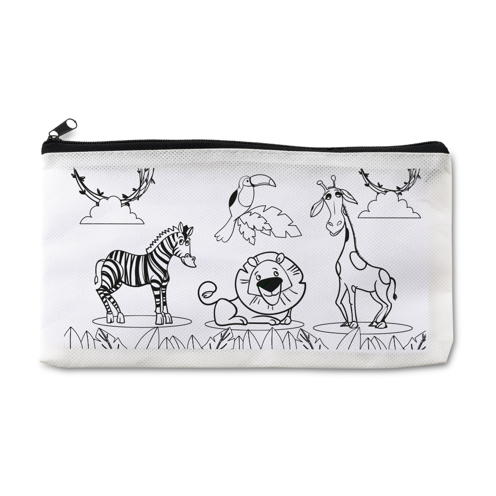 Cartuchera en cambrel, con dibujo para colorear. Incluye 4 marcadores de tinta lavable.