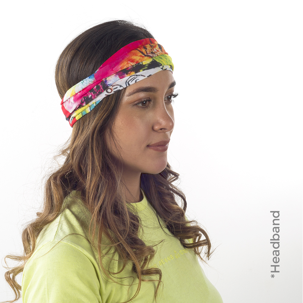 Cuello multifuncional en poliéster para sublimación. Con múltiples usos: bufanda, máscara, banda para el cabello. Tubular, sin costuras laterales.