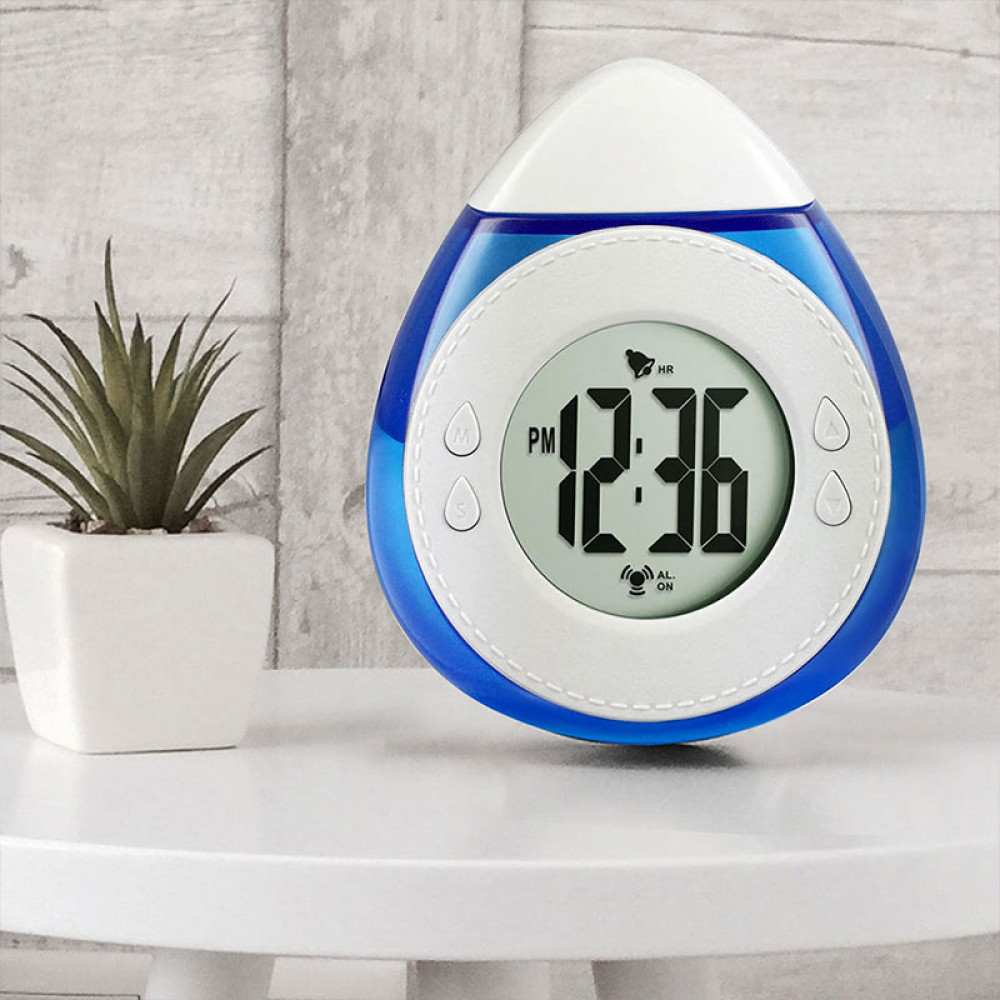 Reloj digital LCD de baterías que cargan con agua. Despertador, formato 24 horas.