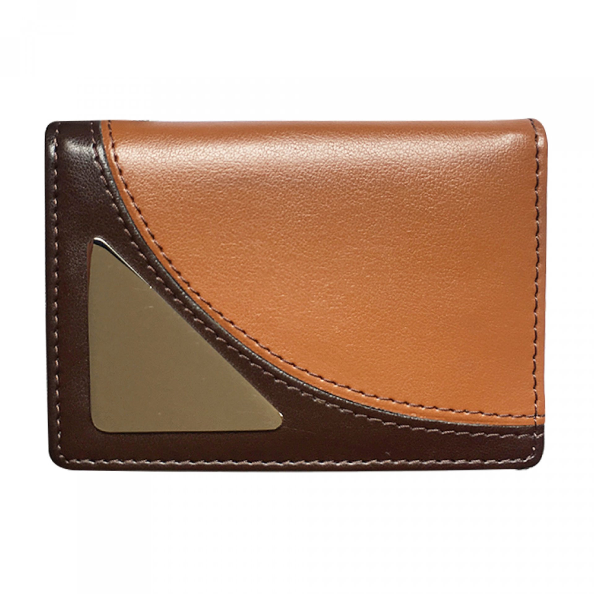 Elaborado en cuero real. Dos tonos de color con accesorio en acero inoxidable. De 10 X 7 X 1,3 cm.