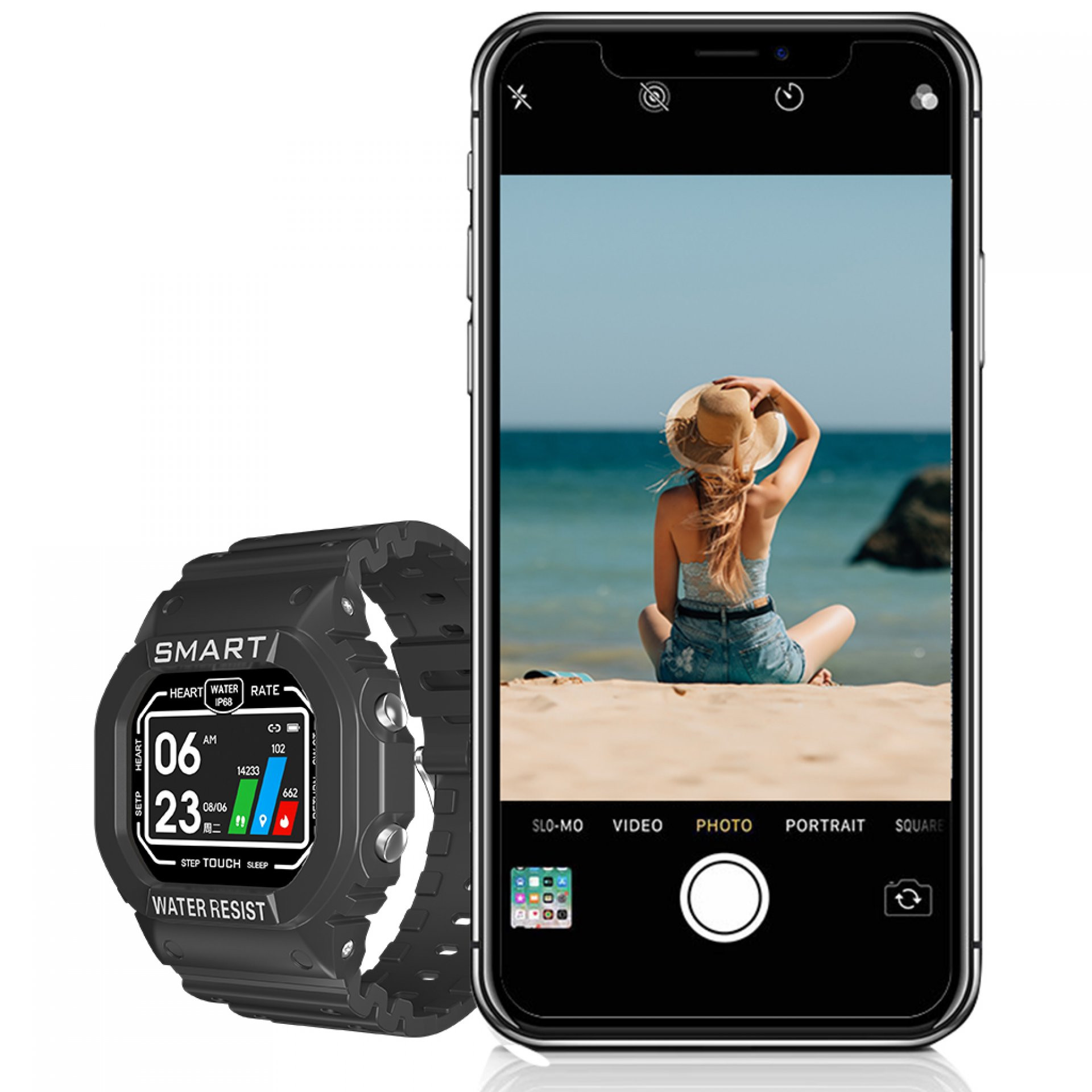 Smart Watch digital con pulso siliconado. Resistencia al agua IP 68 (sumergible). Mediciones de calorías, frecuencia cardiaca, presión sanguínea, distancias recorridas y monitoreo de sueño. Funciones: Modo multi sport, recordartorio de sedentarismo, recepción y rechazo de llamadas, obturador fotogrÁfico, localización anti perdida, notificaciones de mensajeria de redes sociales y correo y activación por movimiento. Batería de 180 MA. Funciona con Android (versión 4.0 y superiores) y iOS (versión 8.0 y superiores). Multi lenguajes. Tamaño de la pantalla: 5 x 4 x 1.54 cm.