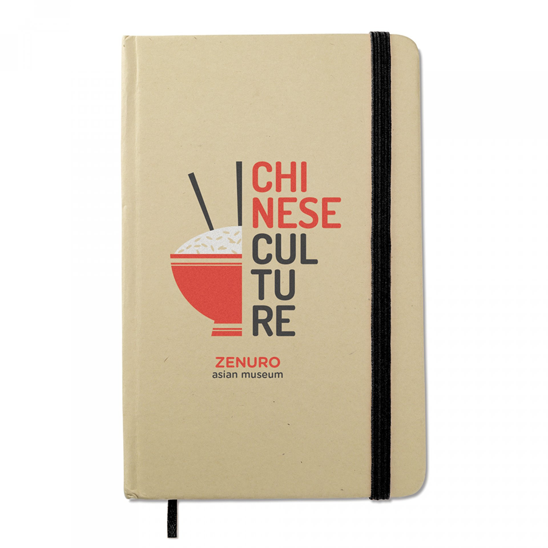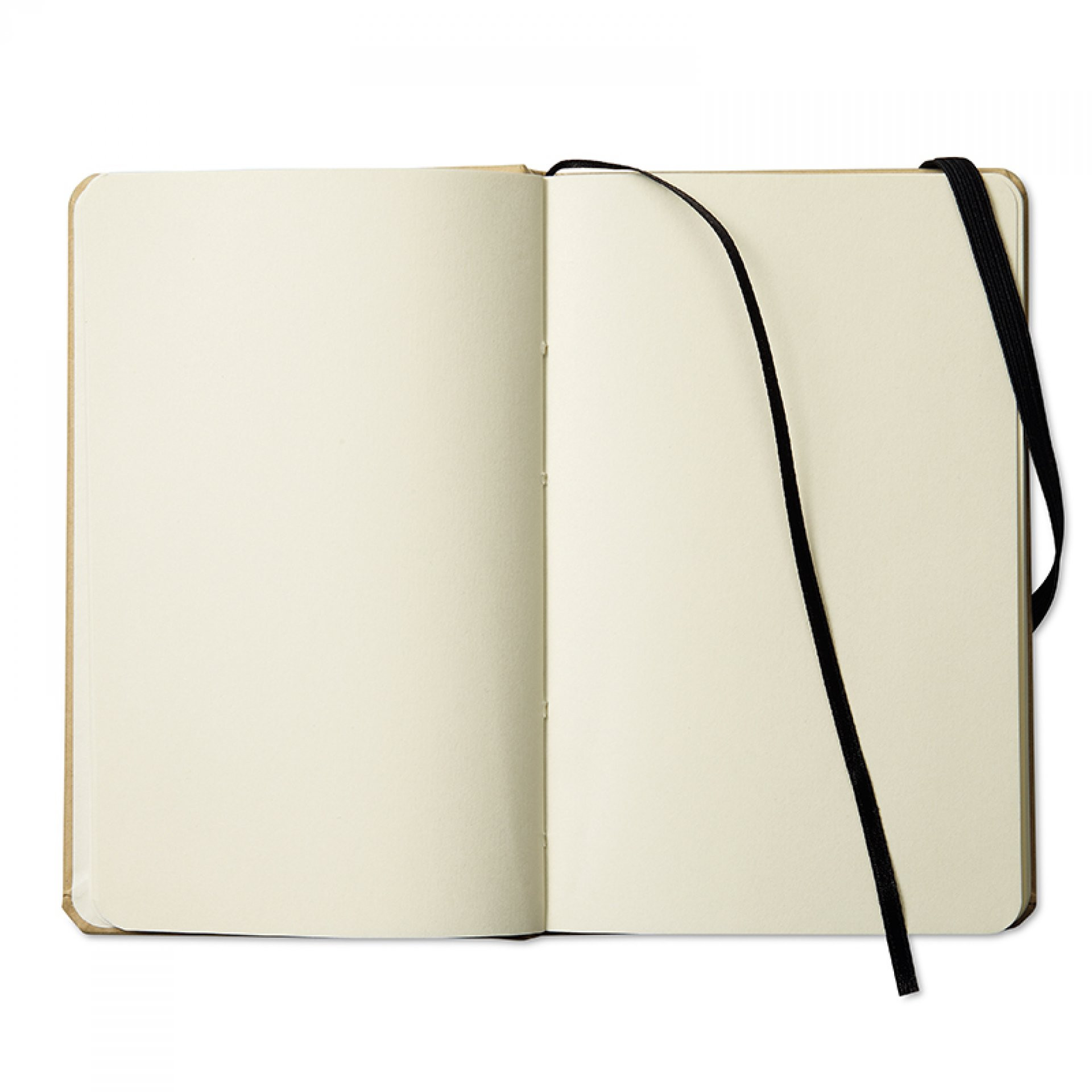 Ecológica con tapas en cartón y caucho de cierre. 80 hojas en blanco. De 14 x 9 cm.