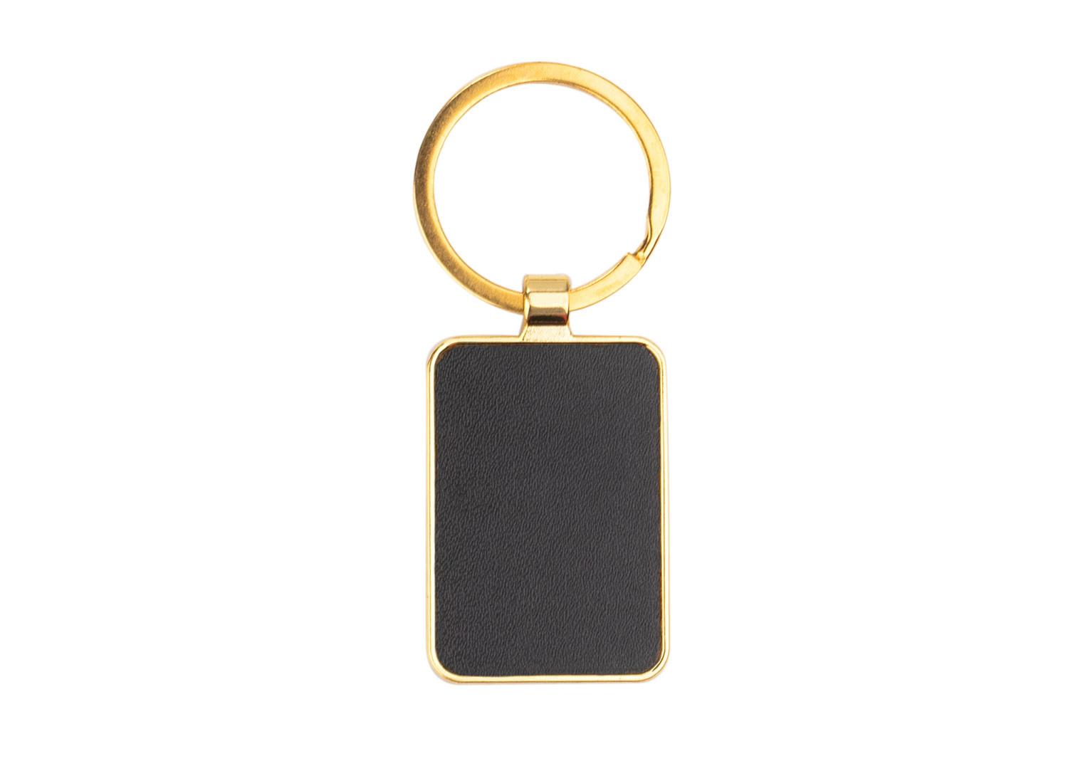 En cuero con accesorio Metálico mate. De 3,5 x 8,3 cm