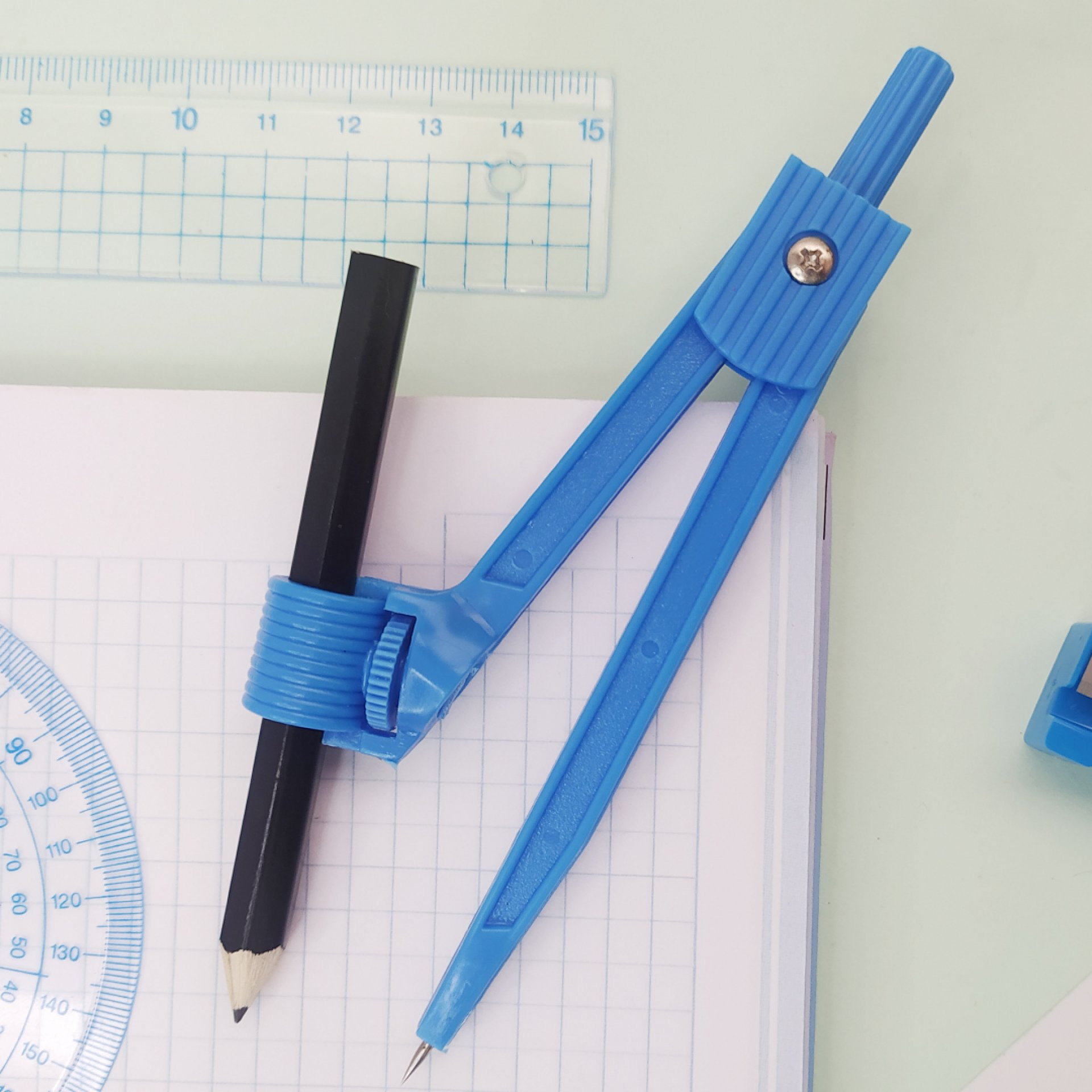 Incluye: CompÁs, borrador, lÁpiz, juego de reglas y tajalÁpiz. De 17,5 x 9 cm.