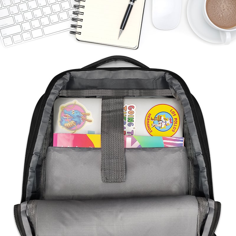 Maleta con bolsillo acolchado para portÁtil. 2 bolsillos frontales y uno lateral con cremallera. Salida USB para carga de baterías externas. Elaborada en poliéster de alta calidad. Capacidad 18 litros/ 810 kilos. Tirantas reforzadas. De 41 x28 x 12 cm.
