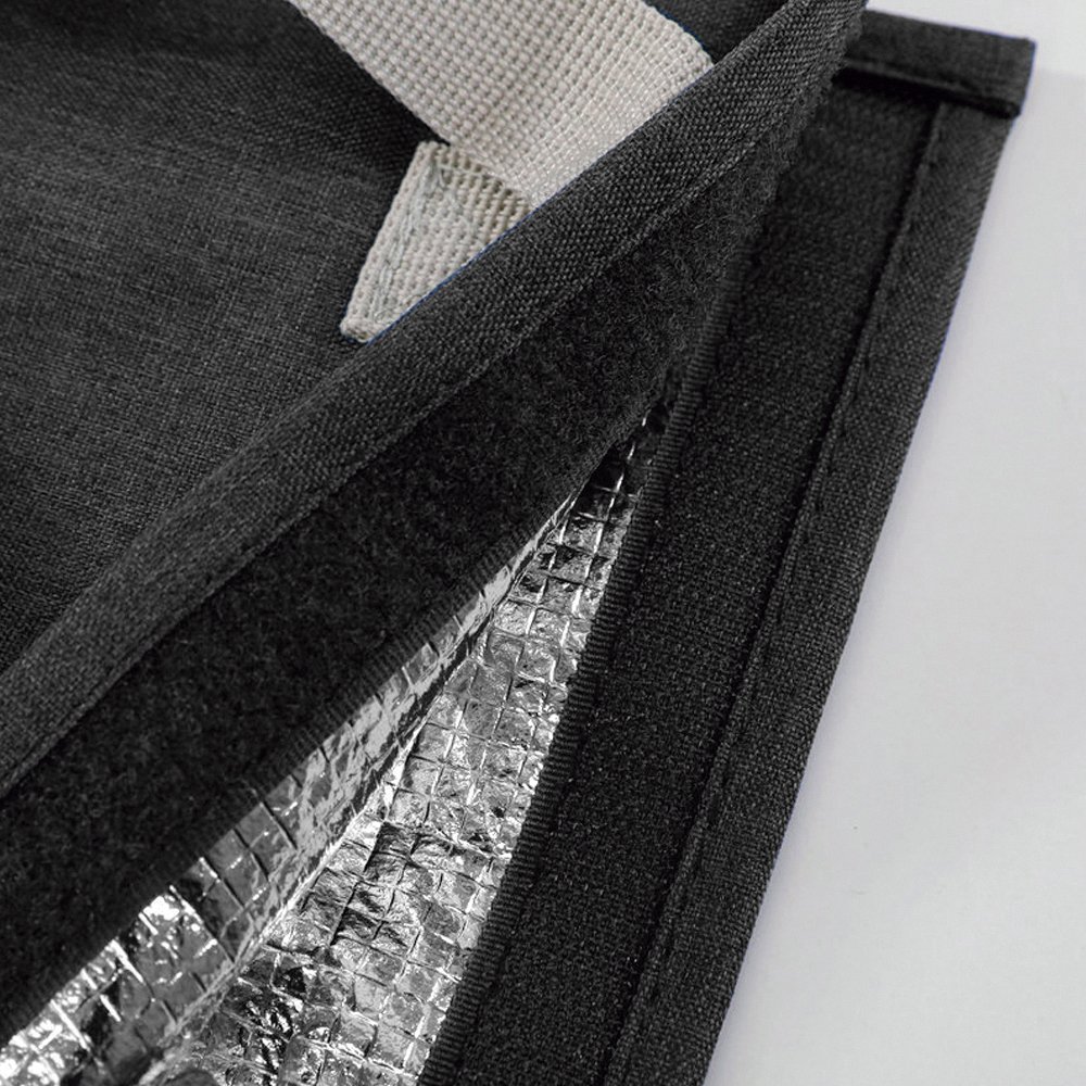 Lonchera en oxfrod con interior de aluminio térmico. Manijas refozadas. De 22,5 x 13 x 25.5 cm