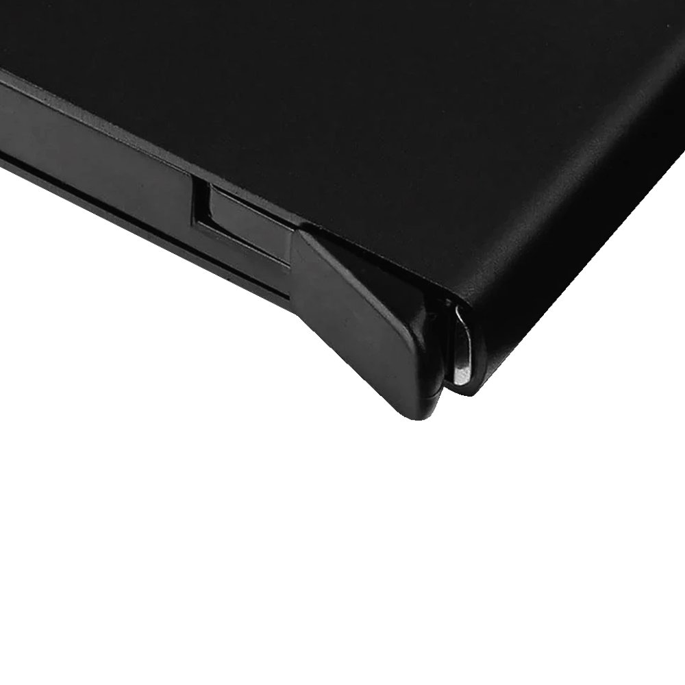 Billetera en aluminio anodizado con protección RFID. Espacio para 6 tarjetas con botón deslizable. De 9.5 x 6.1 cm.