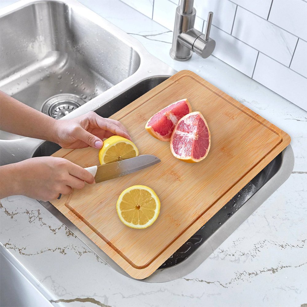 Tabla para picar elaborada en Bambú de doble densidad con manija para agarre. De 20 x 30 cm